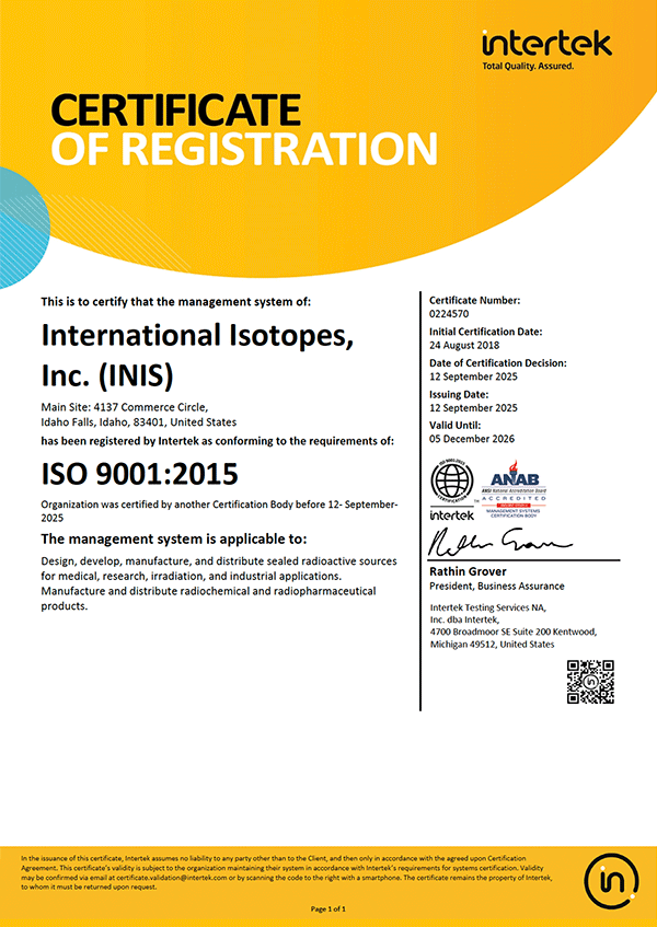 Certifications Home Certifications Quality and Safety Matter All of our sources are manufactured under rigorous quality assurance program that has been certified against ISO 13485 (Medical Devices) and ISO 9001 (Quality Management).